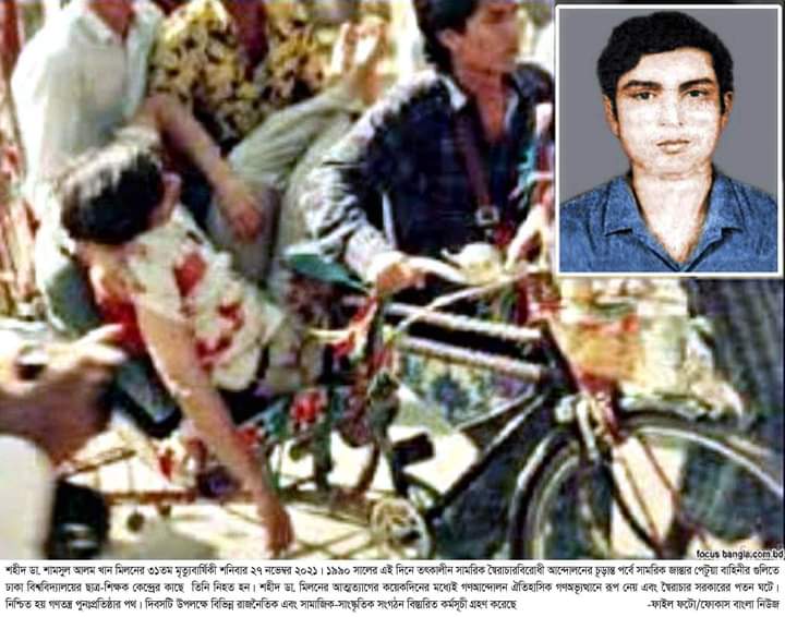 ১৯৯০ সালের এই দিনে স্বৈরাচারবিরোধী আন্দোলন চলাকালে ঢাকা বিশ্ববিদ্যালয় (ঢাবি) এলাকায় গুলিতে নিহত হন ডা. শামসুল আলম খান মিলন।