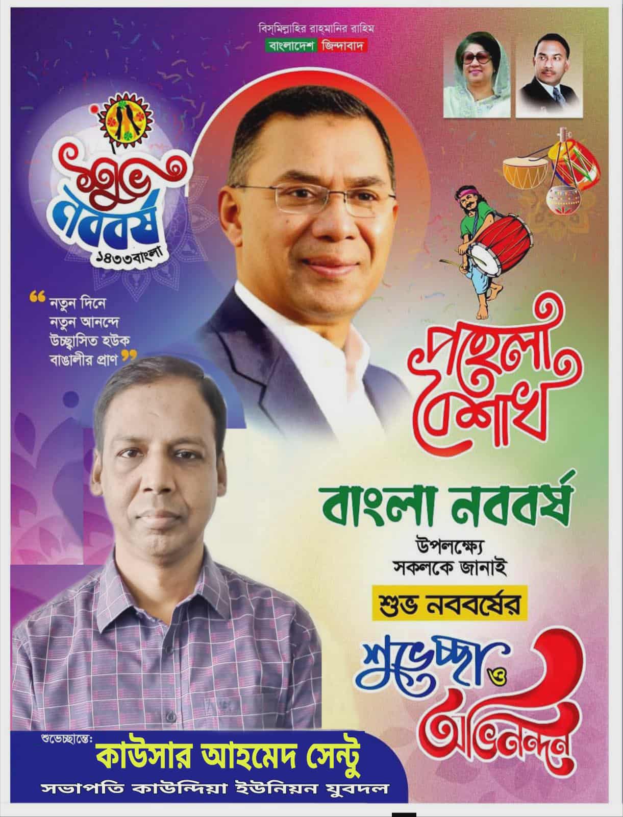কাউন্দিয়াবাসীসহ দেশবাসীকে বাংলা নববর্ষের শুভেচ্ছা জানালেন যুবদল নেতা কাউসার আহমেদ সেন্টু