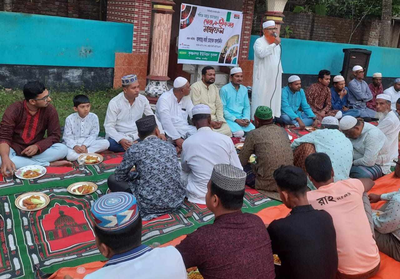 কালিগঞ্জে উপজেলার কৃষ্ণনগর ইউনিয়ন যুবদলের আয়োজনে ইফতার মাহফিল ও আলোচনা সভা অনুষ্ঠিত হয়েছে। শনিবার (০৮ মার্চ) বিকেলে পূর্ব কালিকাপুর গাজীবাড়ি ঈদগাহ ময়দানে ইউনিয়ন যুবদলের আহ্বায়ক আমিনুর রহমানের সভাপতিত্বে ও বিষ্ণুপুর ইউনিয়ন বিএনপির সাবেক সিনিয়র যুগ্ম আহ্বায়ক এম হাফিজুর রহমান শিমুলের সঞ্চালনায় প্রধান অতিথির বক্তব্য রাখেন সাতক্ষীরা ৪ আসনের সাবেক সংসদ সদস্য কাজী আলাউদ্দিন। বিশেষ অতিথির বক্তব্য রাখেন উপজেলা যুবদলের যুগ্ন আহ্বায়ক জি এম রবিউল্লাহ বাহার, কৃষ্ণনগর ইউনিয়ন বিএনপির সদস্য সচিব মাহমুদ মোস্তফা, উপজেলা কৃষক দলের আহ্বায়ক রোকনুজ্জামান রোকন, বিষ্ণুপুর ইউনিয়ন যুবদলের আহ্বায়ক শেখ আব্দুল করিম, শ্রীপুর ইউনিয়ন যুবদলের আহ্বায়ক শাহিনুর রহমান, খুলনা মহানগর ছাত্রদলের সভাপতি জাফর ইকবাল বাবু, এসময় আরো উপস্থিত ছিলেন বিএনপির নেতা জিএম আফজাল হোসেন, আবুল কালাম মেম্বার, অ্যাডভোকেট গোলাম মোস্তফা, রেজাউল ইসলাম, হাফিজুল ইসলাম, বিল্লাহ হোসেন,রাজু প্রমুখ। এসময়ে অত্র ইউনিয়ন বিএনপি ও যুবদলসহ অঙ্গ সহযোগী সংগঠনের নেতাকর্মী এবং শতাধিক সাধারণ জনগন উপস্থিত ছিলেন।