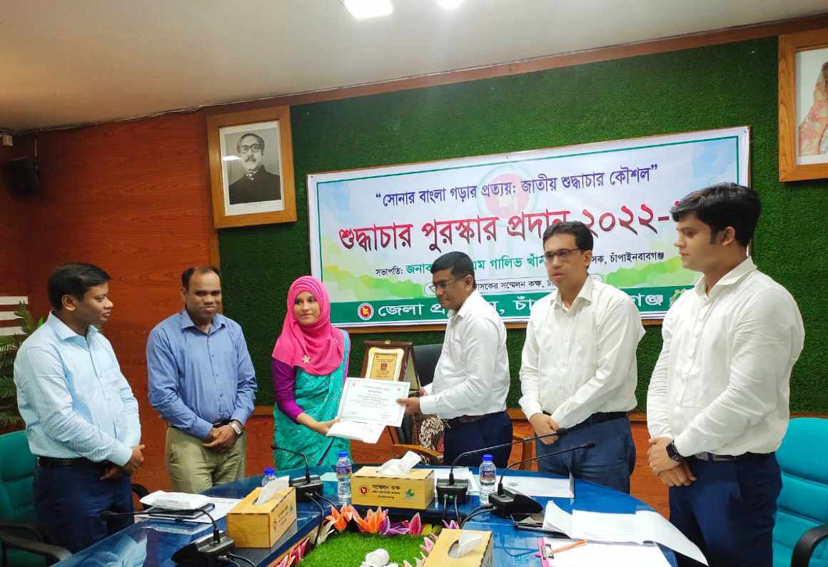 চাঁপাইনবাবগঞ্জের গোমস্তাপুর উপজেলার নির্বাহী অফিসার (ইউএনও ) আসমা খাতুন শুদ্ধাচার পুরস্কারে ভূষিত হয়েছেন। শুদ্ধাচার চর্চায় উৎসাহ প্রদানের লক্ষ্যে ২০২২-২০২৩ অর্থ বছরের শুদ্ধাচার পুরস্কারের অংশ হিসেবে এই পুরস্কার প্রদান করা হয়। এ শ্রেষ্ঠত্বের পুরস্কারে ছিল নগদ অর্থ, সম্মাননা ক্রেস্ট ও সনদ।