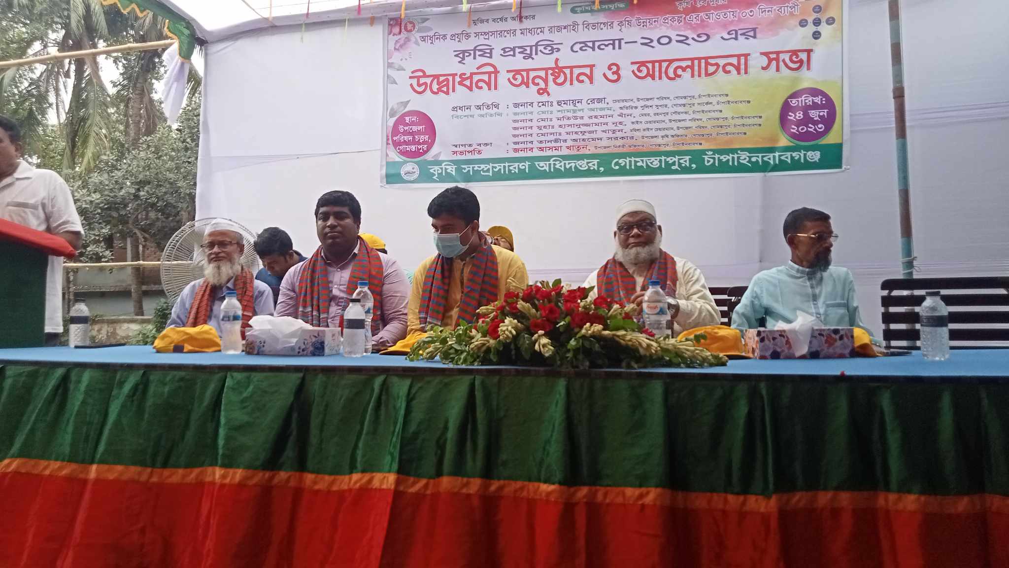 চাঁপাইনবাবগঞ্জের গোমস্তাপুর উপজেলায় আধুনিক কৃষি প্রযুক্তি ২০২৩ এর শুভ উদ্বোধন , স্থান উপজেলা পরিষদ চত্বরে, শনিবার সকাল সাড়ে নয়টায় সময় ২৪(জুন ), আধুনিক প্রযুক্তি সম্প্রসারনের ম্যধমে রাজশাহী বিভাগের কৃষি উন্নয়ন প্রকল্প এর আওতায় গোমস্তাপুর উপজেলায় ,০৩ দিন ব্যাপী আয়োজন করা হয়েছে।