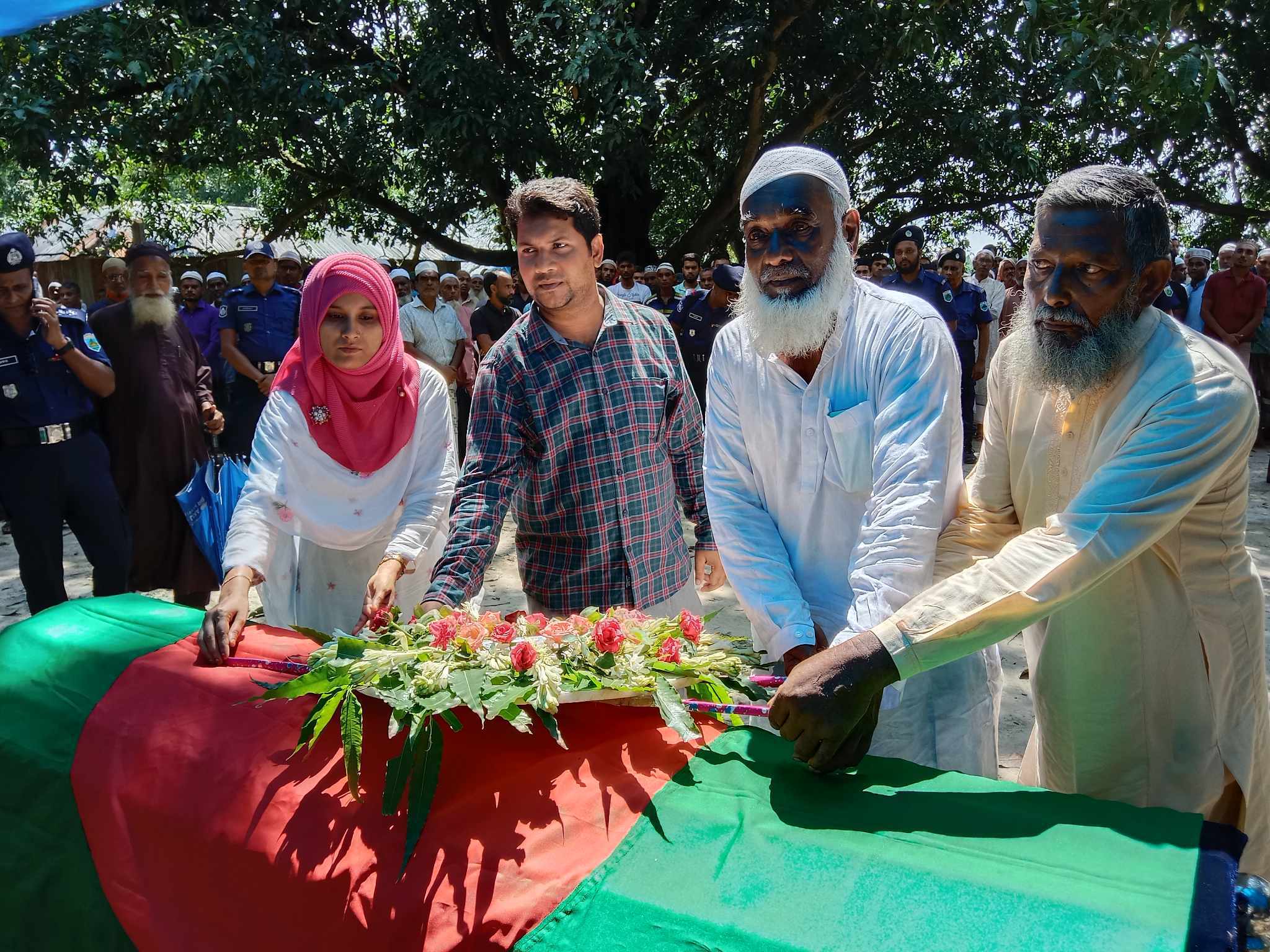 জানাজা পূর্ব, উপজেলা নির্বাহি অফিসার, এক্সিকিউটিভ ম্যাজিস্ট্রেট ও অতিরিক্ত দায়িত্ব প্রাপ্ত মুক্তিযোদ্ধা কমান্ডার আসমা খাতুন, ও গোমস্তাপুর থানার এস আই শাহরিয়া পারভেজ রহমানের নেতৃত্বে পুলিশ সদস্যরা গার্ড অব অনার প্রদান করেন।