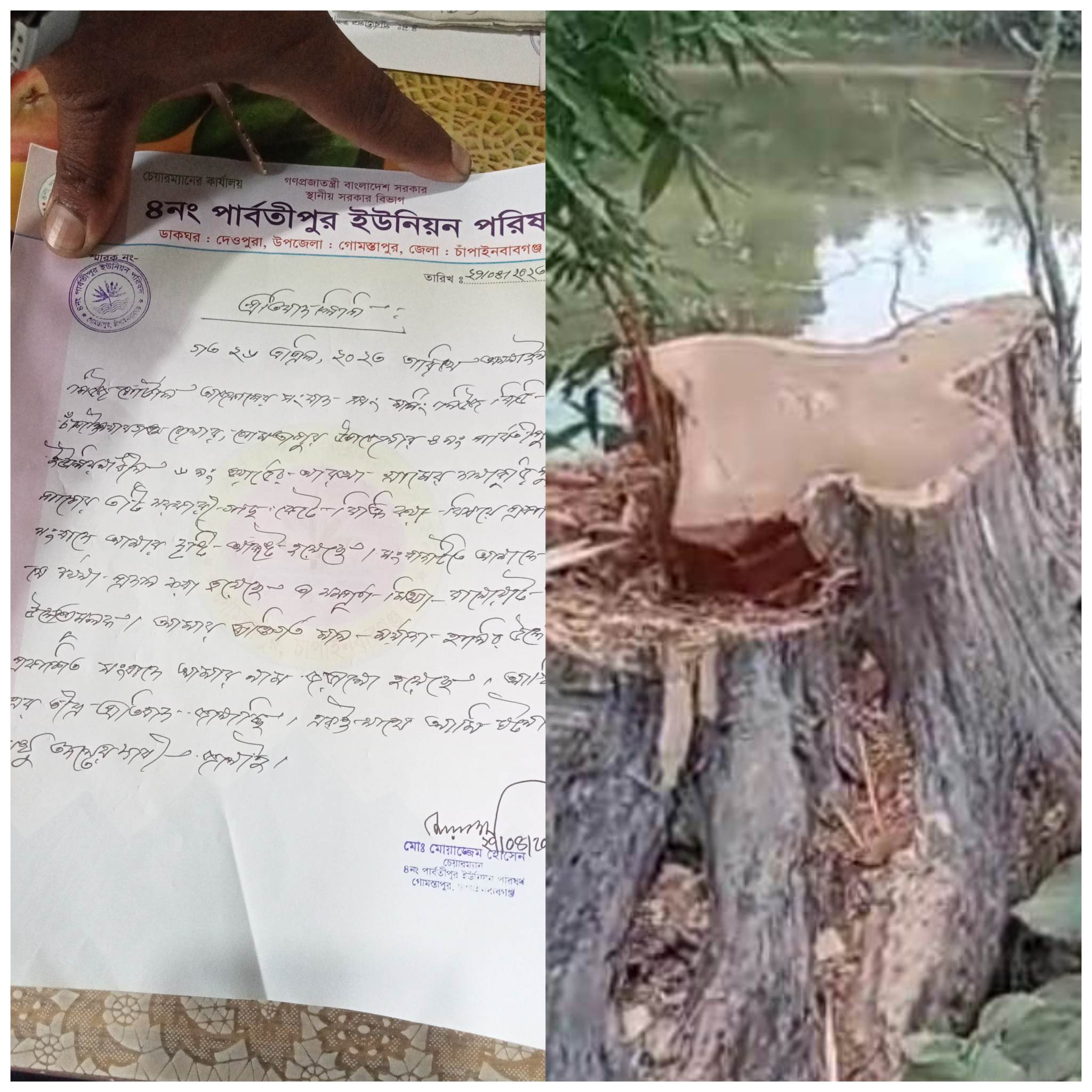 গোমস্তাপুরে সরকারি গাছ কেটে বিক্রির।