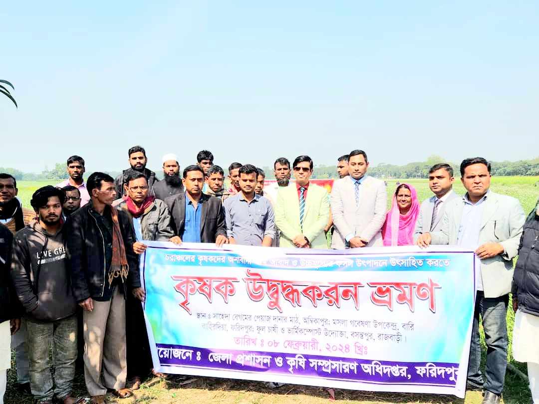 সে লক্ষ্যে ৮ ফেব্রুয়ারি বৃহস্পতিবার দুপুরে দেশের মডেল পেঁয়াজ দানা চাষী শাহিদা বেগমের ফরিদপুরের সদর উপজেলার অম্বিকাপুরের মাঠে আসেন চরভদ্রাসন উপজেলার কৃষকরা।