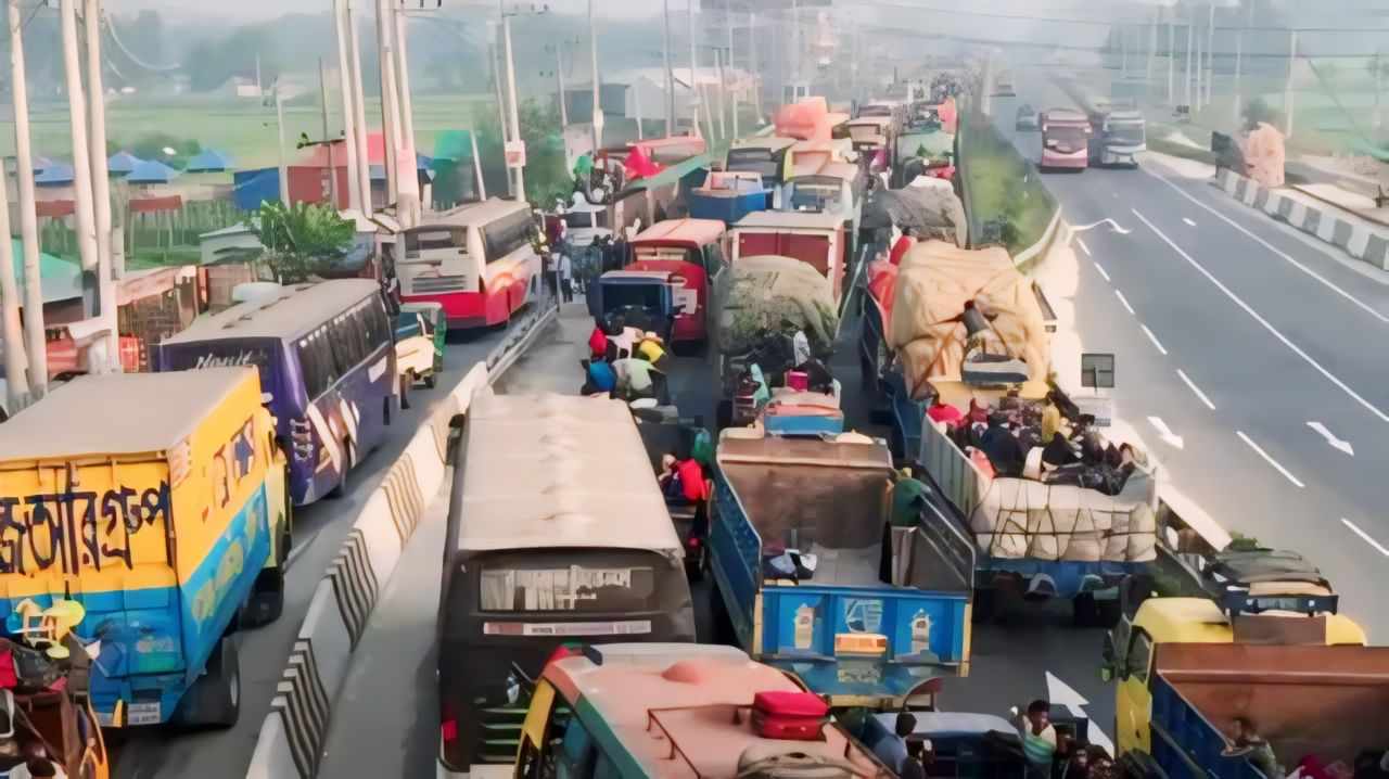 যানজট প্রসঙ্গে তিনি বলেন, আজকে ৬০ শতাংশের বেশি পোশাক কারখানা ছুটি হয়েছে। শ্রমিকদের একটি বড় চাপ আছে, এ কারণেই গাড়ির সংখ্যা বেশি। কোথাও গাড়ি থেমে নেই, চলছে। বিশেষ করে ঢাকা-ময়মনসিংহ মহাসড়কে গাড়ি চলছে, কোথাও থেমে নেই।