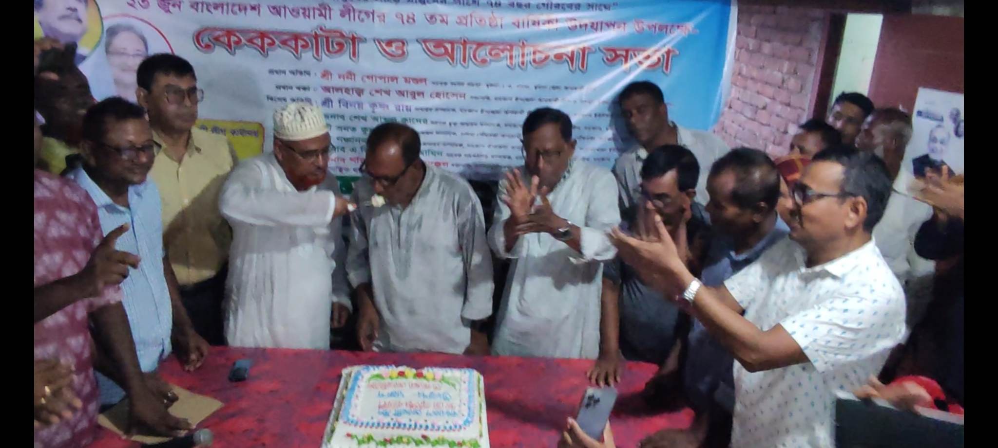 মাহমুদুল হাসান আলমগীর (দাকোপ)খুলনা প্রতিনিধি :দাকোপে উপজেলা ও চালনা পৌরসভা আওয়ামী লীগের যৌথ উদ্যোগে আলোচনাসভা ও কেক কাঁটার মধ্যদিয়ে সংগঠনের ৭৪ তম প্রতিষ্ঠা বার্ষিকী পালিত হয়েছে। শুক্রবার বিকাল সাড়ে ৪টায় উপজেলা আওয়ামী লীগের দলীয় কার্যালয়ে জাতীয় ও দলীয় পতাকা উত্তোলন, জাতির জনক বঙ্গবন্ধু শেখ মুজিবুর রহমানের প্রতিকৃতিতে মাল্যদান, কেক কাটা ও আলোচনাসভা অনুষ্ঠিত হয়। চালনা পৌরসভা আওয়ামী লীগের সভাপতি শেখ শফিকুল ইসলাম আক্কেলের সভাপতিত্বে এবং যুবনেতা রতন কুমার মন্ডলের পরিচালনায় অনুষ্ঠিত সভায় প্রধান অতিথির বক্তৃতা করেন খুলনা-১ আসনের সাবেক সংসদ সদস্য ও জেলা আ.লীগের সদস্য ননী গোপাল মন্ডল। প্রধান বক্তা ছিলেন উপজেলা আওয়ামী লীগের সভাপতি ও উপজেলা পরিষদের সাবেক চেয়ারম্যান আলহাজ্ব শেখ আবুল হোসেন। বিশেষ অতিথির বক্তৃতা করেন উপজেলা আ.লীগের সাধারণ সম্পাদক ও ইউপি চেয়ারম্যান বিনয় কৃষ্ণ রায়, রনজিত কুমার মন্ডল, উপজেলা আ.লীগের সাবেক যুগ্ম সাধারণ সম্পাদক শেখ আবদুল কাদের, ইউপি চেয়ারম্যান পঞ্চানন মন্ডল, উপজেলা আ.লীগের সাবেক সাংগঠনিক সম্পাদক এবিএম রুহুল আমীন, চালনা পৌর মেয়র সনত কুমার বিশ্বাস, উপজেলা আ.লীগের সাবেক সাধারণ সম্পাদক অসিত বরণ সাহা, অধ্যাপক দুলাল রায়, শেখ রফিকুল ইসলাম, রবার্ট জীবন্ত নাথ, কে এম কবীর হোসেন, উপজেলা কৃষক লীগের সভাপতি শেখ গোলাম হোসেন, ইউপি আ.লীগ সভাপতি যথাক্রমে সরোজিত রায় কুঞ্জ, অধ্যাপক সুপদ রায়, অপরাজিত মন্ডল অপু, স্বপন কুমার সরকার, সৌদি আরবের তায়েফ জেলা আ.লীগের সহ-সভাপতি রাজ্জাক ফরাজি, ইউপি আ.লীগের সাধারণ সম্পাদক যথাক্রমে মীর্জা সাইফুল ইসলাম টুটুল, মৃনাল মল্লিক, ক্ষিতিষ চন্দ্র রায়, নিত্যরঞ্জন কবিরাজ, জ্যোতিশংকর রায়, দেবপ্রসাদ দেবু সরকার, উপজেলা শ্রমিক লীগের সভাপতি ও প্রেসক্লাব সভাপতি গোবিন্দ বিশ্বাস, পৌর আ.লীগের যুগ্ম সাধারণ সম্পাদক মোঃ শিপন ভূঁইয়া, আ’লীগনেতা আজগর হোসেন ছাব্বির, পৌর প্যানেল মেয়র শেখ মেহেদী হাসান বুলবুল, পৌর কাউন্সিলর আবদুল গফুর সানা, উপজেলা স্বেচ্ছাসেবক লীগের আহ্বায়ক ও প্রেসক্লাব সাধারণ সম্পাদক জি এম রেজা, শ্রমিক লীগের সাধারণ সম্পাদক অমারেশ ঢালী, পৌর কাউন্সিলর নাসিমা বেগম, উপজেলা যুবলীগনেতা আব্দুল্লাহ আল মাসুম, শেখ জাহিদুর রহমান মিল্টন, আরাফাত আজাদ, পাবক মিস্ত্রী, প্লাবন সরকার, সুরঞ্জন মন্ডল, কৃষক লীগের শেখ ইকবাল হোসেন, উপজেলা ছাত্রলীগের সভাপতি ফয়সাল শরীফ, সাধারণ সম্পাদক লিটন সরদার, অসিত বিশ্বাস, পৌর ছাত্রলীগের সভাপতি রাসেল কাজী, মাসুম হাওলাদার, রাজু বাছাড়,মাহমুদুল হাসান আলমগীর, ফিরোজ গাজী , মাসুম ফকির প্রমুখ।