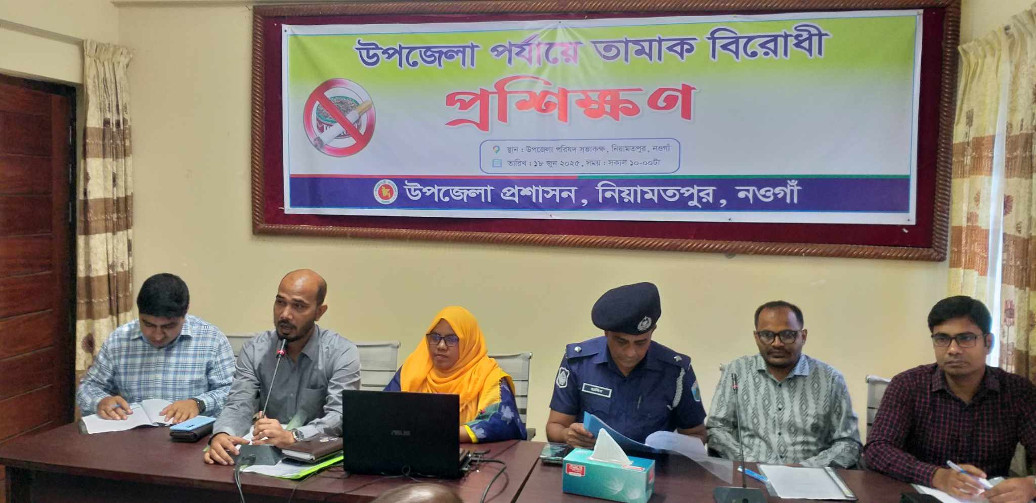 নওগাঁর নিয়ামতপুরে ধূমপান ও তামাকজাত দ্রব্যের ব্যবহার নিয়ন্ত্রণ কার্যক্রমের আওতায় তামাক বিরোধী দিনব্যাপী প্রশিক্ষণ অনুষ্ঠিত হয়েছে। জনপ্রতিনিধি, শিক্ষক, সাংবাদিক, সরকারী কর্মকর্তা ও কর্মচারী, মসজিদের ইমামসহ বিভিন্ন শ্রেণি পেশার মানুষ এতে অংশ নেন ।