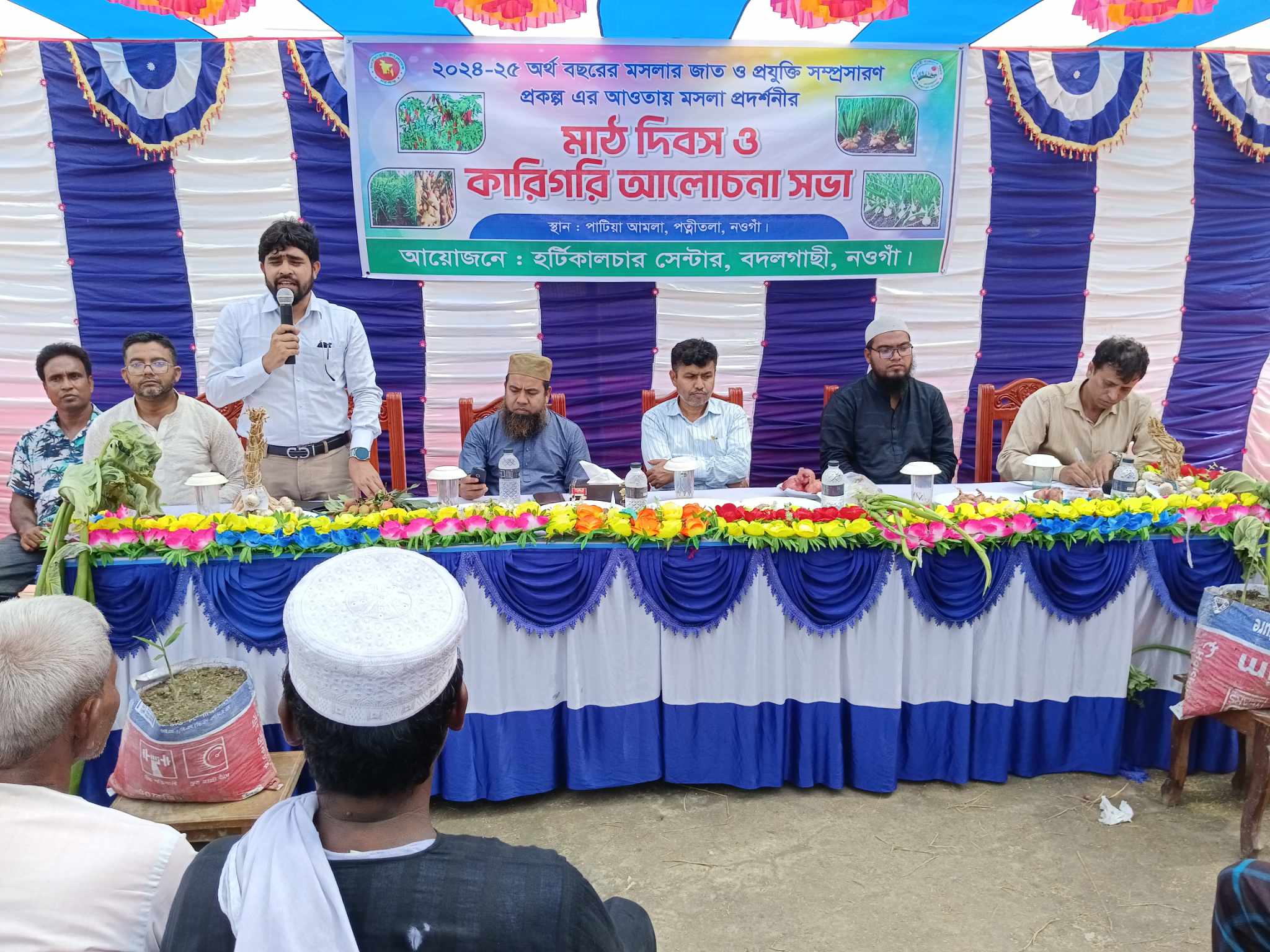 নওগাঁ ২০২৪-২৫ অর্থবছরের মসলার জাত ও প্রযুক্তি সম্প্রসারণ প্রকল্পের আওতায় মসলা প্রদর্শনীর মাঠ দিবস ও কারিগরি আলোচনা সভা অনুষ্ঠিত হয়েছে। আজ বুধবার বেলা দুইটাই নওগাঁর পত্নীতলা উপজেলার পাটিয়া আমলা গ্রামে এই মাঠ দিবস ও কারিগরি আলোচনা সভা অনুষ্ঠিত হয়। বদলগাছি হর্টিকালচার সেন্টারের উপপরিচালক নাসরুল মিল্লাত এর সভাপতিত্বে অনুষ্ঠানে প্রধান অতিথি হিসেবে উপস্থিত ছিলেন নওগাঁ জেলা কৃষি সম্প্রচার অধিদপ্তরের উপ পরিচালক আবুল কালাম আজাদ ।বিশেষ অতিথি হিসেবে উপস্থিত ছিলেন পত্নীতলা উপজেলা কৃষি কর্মকর্তা সোহরাব হোসেন। এছাড়াও এলাকার বিভিন্ন কৃষক ও কৃষাণী উপস্থিত ছিলেন। এ সময় কৃষকদের মশলা চাষের বিভিন্ন পরামর্শ ও মসলা চাষের উপকারিতা সম্পর্কে আলোচনা করা হয়। অন্যান্য খাদ্যপণ্যের তুলনায় বিশ্ব বাজারে বেশি উঠানামা করে মসলার দাম। ঈদসহ বিভিন্ন অনুষ্ঠান ঘিরে দেশে বেড়ে যায় মসলার চাহি দাও। প্রতিবছর দেশের মসলার চাহিদা ৩৫ টনেরও বেশি।এর প্রায় ৪০ থেকে ৪২ শতাংশ পূরণ করা হয় আমদানির মাধ্যমে। দেশের প্রায় ৫০ ধরনের মসলা ব্যবহার হয়ে থাকে। বাংলাদেশের মসলার বাজার প্রায় ৩০ হাজার কোটি টাকার।আমদানিকৃত মসলার বাজার ৯০০ কোটি টাকার মতো। দেশে মসলার জমির অভাব আছে। অভাব আছে উৎকৃষ্ট বীজের। মসলা চাষের আগ্রহ ও কম কৃষকের। কৃষকদের মসলা চাষে যুক্ত করলে দেশের মসলা উৎপাদন বেশি হবে ও লাভজনক হবে বলে মনে করেন কৃষি কর্মকর্তারা।