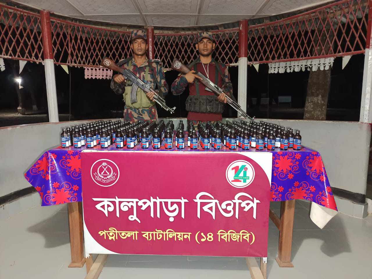 অদ্য ০৪ এপ্রিল ২০২৫ তারিখ ০২৪০ ঘটিকায় পত্নীতলা ব্যাটালিয়ন (১৪ বিজিবি) এর অধীনস্থ কালুপাড়া বিওপি’র বিওপি কমান্ডার সুবেদার মোঃ আইয়ুব আলী এর নেতৃত্বে গোয়েন্দা তথ্যের ভিত্তিতে একটি বিশেষ টহল দল সীমান্ত পিলার ২৬৮/১০-এস হতে আনুমানিক ১৫০ গজ বাংলাদেশের অভ্যন্তরে আলতাদিঘী গ্রামের মাঠের ধান ক্ষেত্রের মধ্যে অভিযান পরিচালনা করে মালিকবিহীন অবস্থায় ২৩১ বোতল ভারতীয় ফেন্সিডিল আটক করতে সক্ষম হয়।অদ্য ০৪ এপ্রিল ২০২৫ তারিখ ০৬০০ ঘটিকায় অধীনস্থ বস্তাবর বিওপি’র টহল কমান্ডার নায়েক মোঃ ইয়াদ আলী এর নেতৃত্বে আর একটি বিশেষ টহলের মাধ্যমে সীমান্ত পিলার ২৬৮ এমপি হতে আনুমানিক ০২ কিঃমিঃ বাংলাদেশের অভ্যন্তরে দক্ষিণ চকযাদু গ্রামস্থ ইটের সলিং রাস্তা থেকে অভিযান পরিচালনা করে ২৬০পিস নেশাজাতীয় ট্যাপেন্টাডল ট্যাবলেটসহ ০২জন চোরাকারবারী মোঃ আনোয়ার হোসেন(৬০), পিতা-মৃত খাতের আলী, গ্রাম-দক্ষিণ চকযাদু, পোষ্ট-ধামইরহাট, মোঃ আরিফ হোসেন(২৯), পিতা-মোঃ জাহিদুল ইসলাম, গ্রাম-উদয়শ্রী, পোষ্ট-খেলনা, উভয়ের থানা-ধামইরহাট ও জেলা-নওগাঁকে আটক করতে সক্ষম হয়। আটককৃত আসামীর বিরুদ্ধে ধামইরহাট থানায় মামলা দায়ের পূর্বক মালামালসহ পুলিশের নিকট হস্তান্তর করার কার্যক্রম প্রক্রিয়াধীন। সর্বমোট সিজার মূল্য-১,৪৪,৪০০/- টাকা।