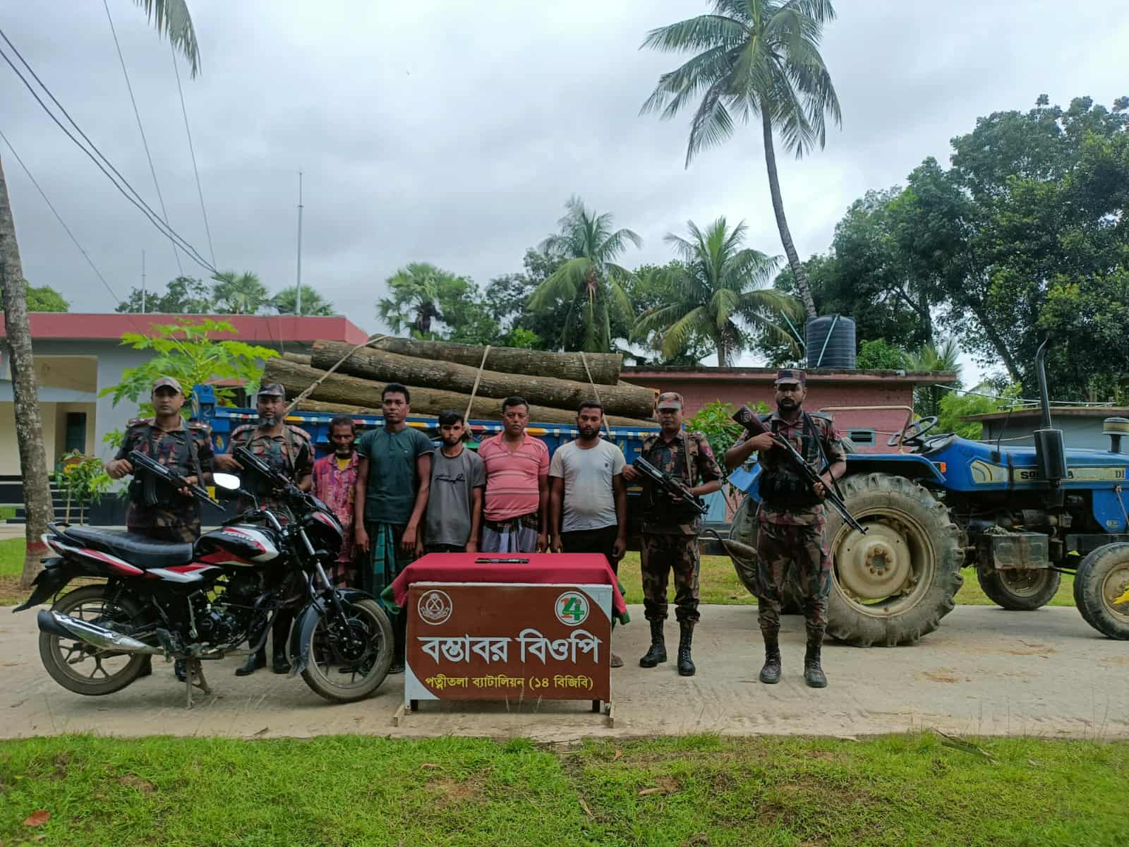 শনিবার (২৬ জুলাই) ভোর ৪টার সময় বস্তাবর বিওপির একটি বিশেষ টহল দল সীমান্ত পিলার নং ২৬০ এমপি হতে আনুমানিক এক কিঃমিঃ বাংলাদেশের অভ্যন্তরে শিমুলতলী ব্রিজের পাশে ১৪ বিজিবি অভিযান পরিচালনা করে ৬৩ সেফটি আকাশমনি কাঠ ও ০১টি সোনালিকা ট্রাকসহ ০৫ জন চোরাকারবারী কে আটক করে। আটক কৃতরা হলেন শ্রী অমল চন্দ্র বর্মণ(৩৫), পিতা-শ্রী ধিরেন্দ্র চন্দ্র বর্মণ, শ্রী লিটন বর্মণ(২৮), পিতা-শ্রী রঘুনাথ বর্মণ, শ্রী নরেশ বর্মণ(৩২), পিতা-শ্রী নৃপেন চন্দ্র বর্মণ, গ্রাম-চকহরিপুর, মোঃ রফিকুল ইসলাম(৫৫), পিতা-মৃত-নূরউদ্দিন, গ্রাম-সেলিমপুর, মোঃ হামিদুল ইসলাম(২৫), পিতা-মোঃ রেজাউল করিম, গ্রাম-উদয়শ্রী সকলের থানা-ধামইরহাট ও জেলা-নওগাঁ।