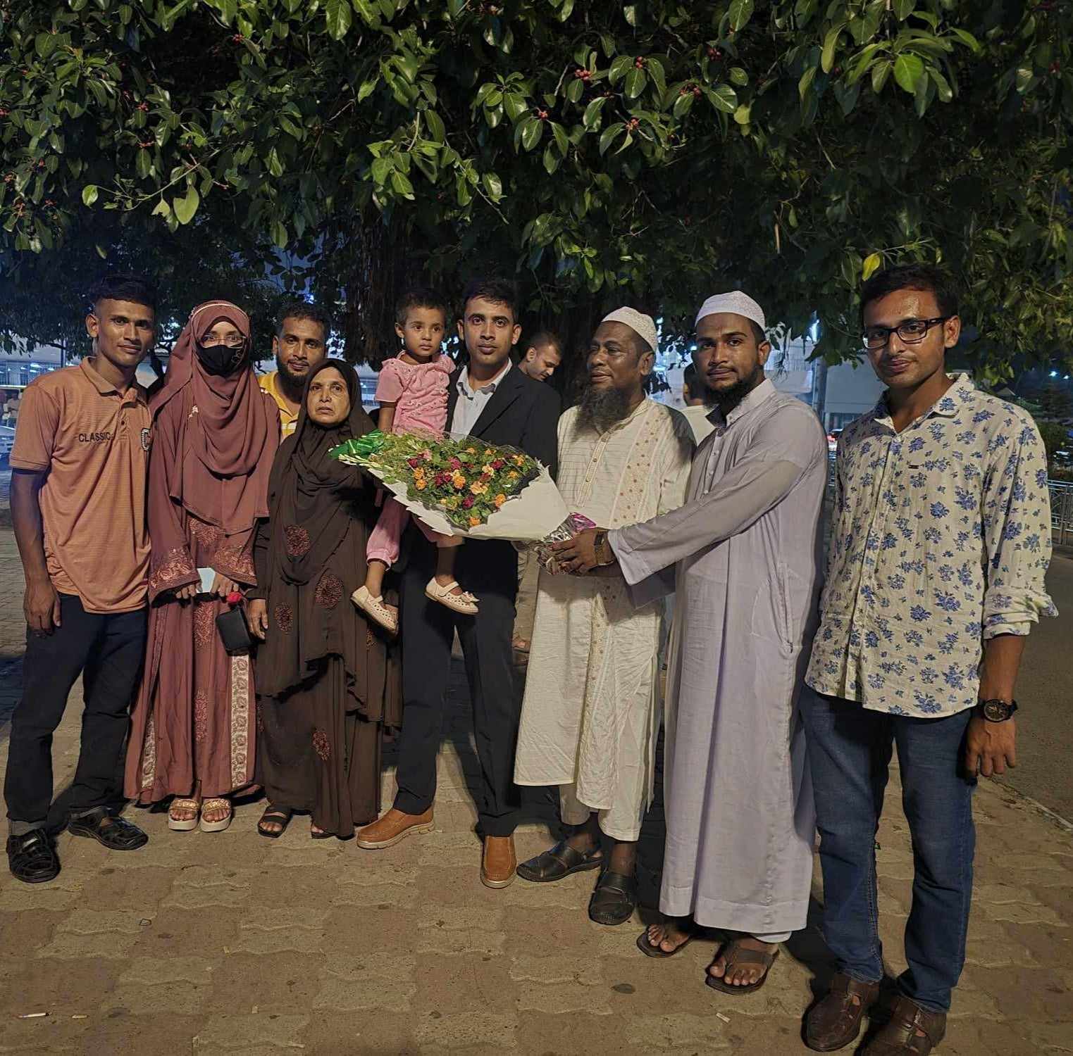 আহম্মদ হুসাইন :রুপসা -খুলনা: বছরের পর বছর ফাড়ি দিয়ে প্রবাসে থাকার পর প্রবাসী যখন দেশে ফিরে আসে তখন এক অন্য রকম অনুভূতি কাজ করে, যখন তার প্রিয় পরিবারের কাছে ফিরে আসে। খুলনা রুপসা উপজেলার পুটিমারী গ্রামের সৈয়দ মোল্ল্যার ছেলে মো:সোহেল রানা,তিনি শিক্ষা জীবন শেষ করে মোটা অঙ্কের বেতনের জন্য দক্ষিণ কোরিয়ায় চাকরিতে ২০১৮ চলে যান।সেখান থেকে ২০২৪ সালে ৯ জুন রবিবারে দেশে আসেন।এর আগে শিঙ্গাপুর প্রায় ৩-৪ বছর ছিল, পরে দক্ষিণ কোরিয়ায় ভাষা পরিক্ষায় সফল হয়ে চলে যান দক্ষিন কোরিয়ায়। মো: সোহেল রানা ছাত্র জীবন থেকেই অন্য রকম, একজন বড় মনের মানুষ, সৎ,দেশপ্রেমিক, মেধাবী, সাহসী, সমাজের অসহায় মানুষের সেবা করা,ধর্মীয় কাজে সহায়তার হাত বাড়িয়ে দেওয়া,মসজিদ, মাদ্রাসার নির্মানে সহায়তা করায় রয়েছে অন্য রকম অবদান। তার পরিবারেরর লোকজন তাকে পেয়ে বলেন, এ এক অন্য রকম অনুভুতি যা ভাষায় বলা সম্ভাব না। তার বড় ভাই মো:শহিদুল ইসলাম বলেন,আল্লাহ ভাইকে সব সময় সুস্থ ও ভালো রাখুন।ছয় বছর পর ভাইকে ফেয়ে এক অন্য রকম অনুভূতি কাজ করছে। পরবর্তীতে তাকে ফুল দিয়ে শুভেচ্ছা ও অভিন্দন জানানো হয় । এ সময় তার পরিবারের বাবা মো:সৈয়দ মোল্লা, মা জোসনা বেগম,মো: শহিদুল ইসলাম ছোট ভাই মো: রবিউল ইসলাম, আহম্মদ হুসাইন, মো: ইমামুল মোল্যা,ছোট বোন: শিরিন শিলা লুবনা। এছাড়াও অন্য ব্যাক্তি গন উপস্থিত ছিলেন।