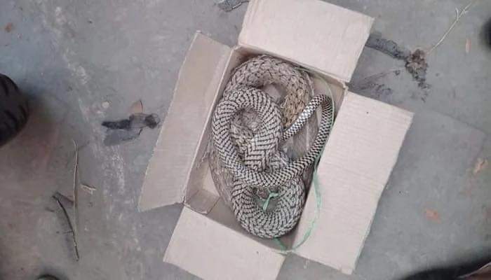 চেয়ারম্যান জনাব কাইমোদ্দিন মন্ডল নগরকান্দা থাকাতে সেটি গ্রহণ করে তার সহযোগী বাবলু, বাবলু বাক্স খুলেই দেখেন তার ভিতর বিশাল আকারের একটা সাপ, পরবর্তীতে বাবলু অনেক ভয় পায় এবং সে বিষয়টি চেয়ারম্যানকে জানালে ঘটনাস্থলে অনেক লোকজন আসে এবং যে ভ্যানচালক ঐ বাক্স এনেছিল তাকে আটক করে।