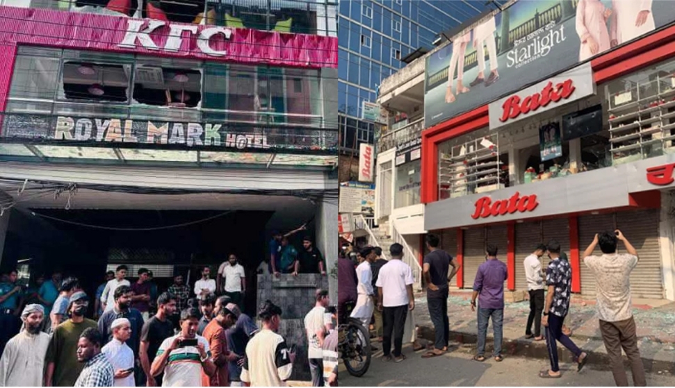 ফিলিস্তিনে ইসরায়েলি বর্বরতা: সিলেটে কেএফসি ও বাটার শোরুমে বিক্ষুব্ধ জনতার হামলা।