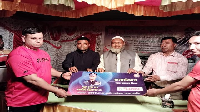 সাতক্ষীরায় ব্যাপক উৎসাহ ও উদ্দীপনার মধ্য দিয়ে পুলিশ সুপার কাপ ৮দলীয় ব্যাডমিন্টন টুর্নামেন্ট ২০২৪ অনুষ্ঠিত হয়েছে। রবিবার (১০ মার্চ) ভোমরা ইমিগ্রেশন পুলিশ চেক পোস্টে ভোমরা সিএন্ডএফ এজেন্টস্ অ্যাসোসিয়েশন এর আয়োজনে ভোমরা পুলিশ ইমিগ্রেশন চেক পোস্ট চত্বরে ভোমরা ইমিগ্রেশন পুলিশ চেকপোস্ট ইনচার্জ মো. মাজরিহা হোসাইন এর সভাপতিত্বে প্রধান অতিথি হিসেবে বক্তব্য রাখেন এবং টুর্নামেন্টের আনুষ্ঠানিক উদ্বোধন করেন ভোমরা স্থলবন্দর শুল্ক স্টেশনের ডেপুটি কমিশনার মো. এনামুল হক। এসময় বিশেষ অতিথি হিসেবে উপস্থিত ছিলেন ভোমরা স্থলবন্দর ট্রাফিক উপ-পরিচালক মোহাম্মদ রুহুল আমিন, ভোমরা সি এন্ড এফ এজেন্টস্ অ্যাসোসিয়েশনের ভারপ্রাপ্ত সভাপতি শেখ এজাজ আহমেদ স্বপন, সাধারণ সম্পাদক এ এস এম মাকছুদ খান প্রমুখ। মাজরিহা-মুজাহিদ ইমিগ্রেশন ও মুসা-মনি সিএন্ডএফ এজেন্টস্ অ্যাসোসিয়েশন দলসহ ৮টি দল অংশ নেয়। টুর্নামেন্টের খেলা শেষে বিজয়ীদের মাঝে পুরস্কার বিতরণ করেন অতিথিবৃন্দ। এসময় ভোমরা সিএন্ডএফ এজেন্টস্ এসোসিয়েশনের কর্মকর্তা ও ভোমরা ইমিগ্রেশন পুলিশের অফিসারগণ উপস্থিত ছিলেন। সমগ্র অনুষ্ঠান সঞ্চালনা করেন জুয়েল।