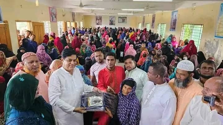 মনপুরায় এম পি জ্যাকবের শাড়ি বিতরন, নির্বাচনে নৌকার পাশে থাকার আহবান!!