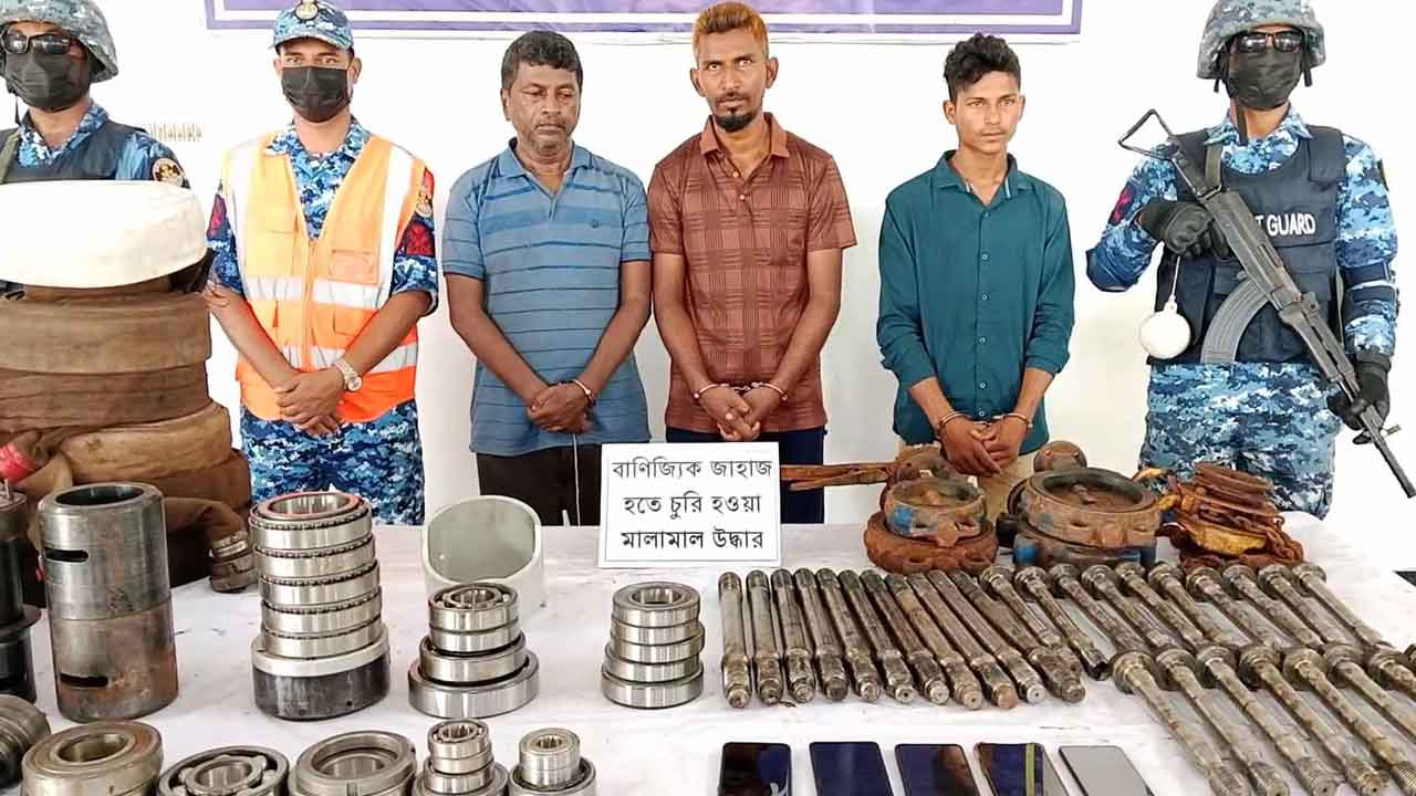 আটক অন্যরা হলেন, পেশাদার ডাকাত সুমন হাওলাদার (২১) ও ডাকাতির মালামাল ক্রেতা মো. সুমন হোসেন (৩০)। বুধবার (২৮ মে) দুপুরে কোস্টগার্ড পশ্চিম জোন মোংলা, মোংলা উপজেলার বিভিন্ন এলাকায় অভিযান চালিয়ে ডাকাতির মালামাল উদ্ধার করা হয়েছে। উদ্ধার মালামালের মধ্যে ইঞ্জিনের বিভিন্ন ধরণের স্পেয়ার পার্টস, ইঞ্জিনের বিভিন্ন সাইজের বিয়ারিং, ব্যাটারি, ব্যাটারির চার্জার ও জাহাজের অন্যান্য গুরূত্বপূর্ণ যন্ত্রাংশ রয়েছে।কোস্ট গার্ড পশ্চিম জোন, মোংলার অপারেশন্স কর্মকর্তা লেফটেন্যান্ট কমান্ডার আবরার হাসান বলেন, জাহাজের অধিকাংশ নাবিক গত ৬-৭মাস ধরে সঠিকভাবে বেতন পায় না। যার ফলে নাবিকদের মধ্যে মালিক পক্ষের বিরুদ্ধে তীব্র ক্ষোভ বিরাজ করছিল। একারণে ইতিপূর্বেও জাহাজ হতে বিভিন্ন গ্রুপ ও ডাকাতের কাছে মেশিনারিজ পার্টস বিক্রি করা হয়। জাহাজের চীফ ইঞ্জিনিয়ার এর তত্ত্বাবধানে স্থানীয় দুষ্কৃতকারীদের সঙ্গে মিলে এই ডাকাতির নাটক সাজিয়ে লুটকৃত মালামাল বিক্রির মাধ্যমে অর্থ ভাগাভাগির পরিকল্পনা করে। তিনি আরও বলেন, উদ্ধারকৃত মালামাল জাহাজ কর্তৃপক্ষের নিকট হস্তান্তরের প্রক্রিয়া চলমান রয়েছে এবং আটককৃত ব্যক্তিদের থানায় হস্তান্তরের কার্যক্রম প্রক্রিয়াধীন। তবে জাহাজের সংশ্লিষ্ট ব্যক্তিদের এই ঘটনার সঙ্গে জড়িত থাকার বিষয়টি যথাযথ তদন্ত করার দাবি রাখে। জাহাজের মালিক কর্তৃক নাবিকদের বেতন ভাতা না দেওয়া এবং গত ৬ মাস যাবৎ জাহাজটিকে এভাবে ফেলে রাখার বিষয়টিও আরো তদন্ত করার অবকাশ রয়েছে।