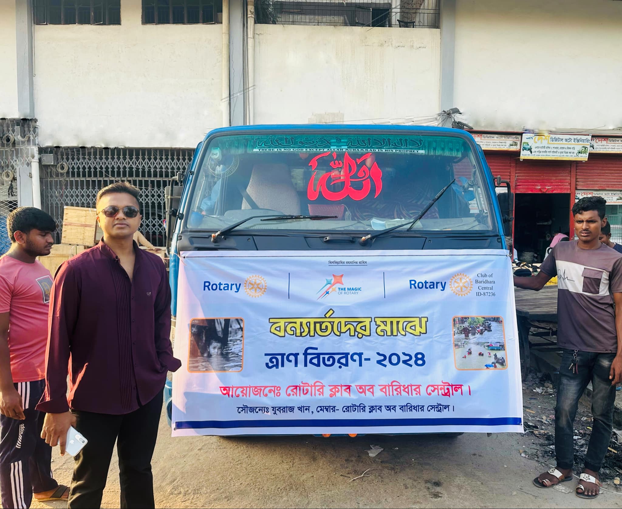 রোটারি ক্লাব অব বারিধারা সেন্ট্রাল এর পক্ষ হতে বন্যাতদের মাঝে ত্রাণ বিতরণ করেন যুবরাজ খান