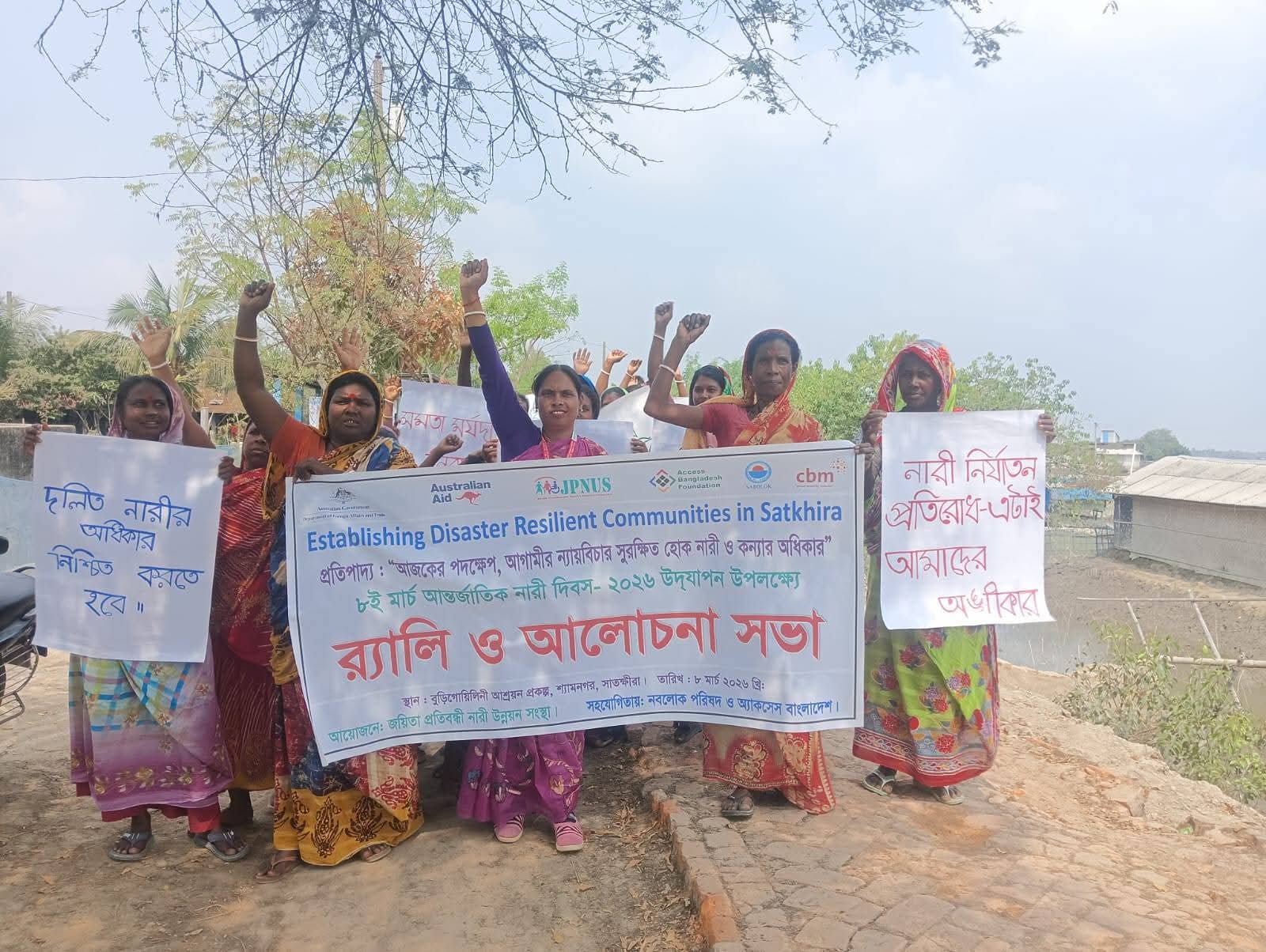 সাতক্ষীরার শ্যামনগর উপজেলার বুড়িগোয়ালিনী আশ্রয়ণ প্রকল্পে ৮ মার্চ (রবিবার), EDRCS প্রকল্পের আওতায় “আজকের পদক্ষেপ, আগামীর ন্যায় বিচার সুরক্ষিত হোক নারী ও কন্যার অধিকার” প্রতিপাদ্য বিষয়কে সামনে রেখে আন্তর্জাতিক নারী দিবস পালন করা হয়। নবলোক পরিষদ ও অ্যাকসেস বাংলাদেশ ফাউন্ডেশন-এর সহযোগিতায়, জয়িতা প্রতিবন্ধী নারী উন্নয়ন সংস্থা এর- আয়োজনে এই কর্মসূচির আয়োজন করা হয়।
