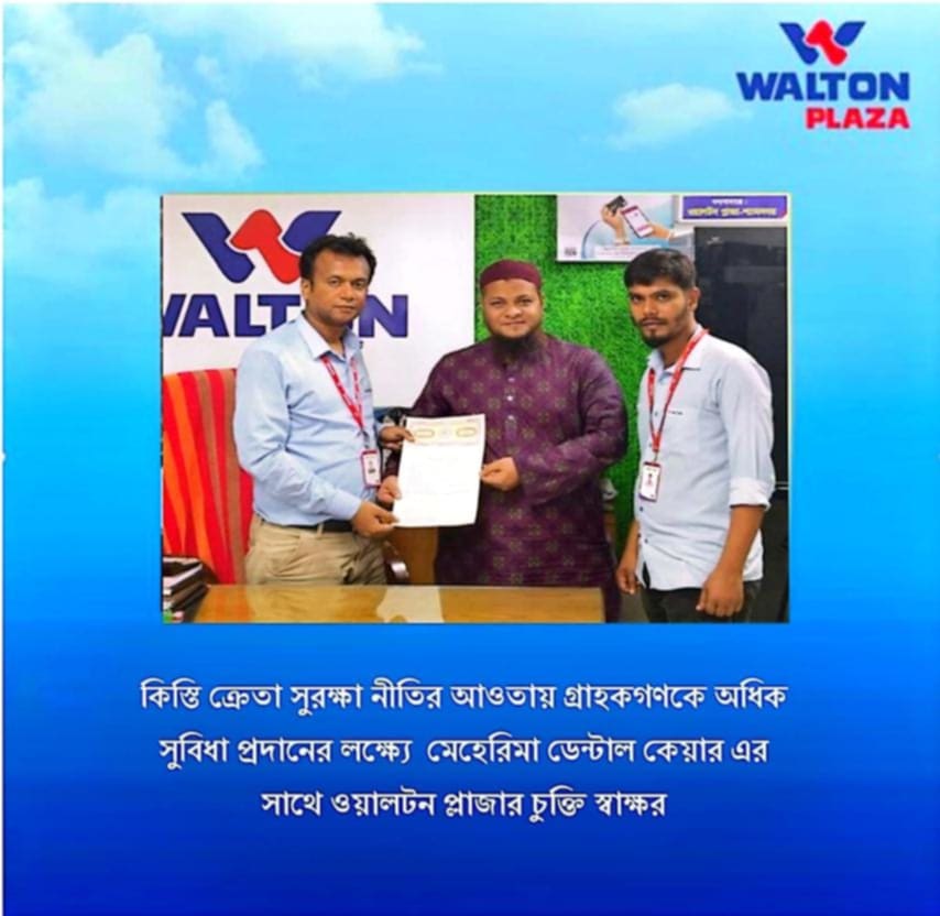 চুক্তি পত্রে বলা হয়, ওয়ালটন প্লাজার কিস্তি ক্রেতা সুরক্ষা কার্ডধারী এবং তার পরিবারের সদস্যরা মেহেরিমা ডেন্টাল কেয়ার, গোপালপুর শহীদ মিনার রোড, শ্যামনগর, সাতক্ষীরা থেকে বিভিন্ন সেবার উপর আকর্ষণীয় ডিসকাউন্ট পাবে।