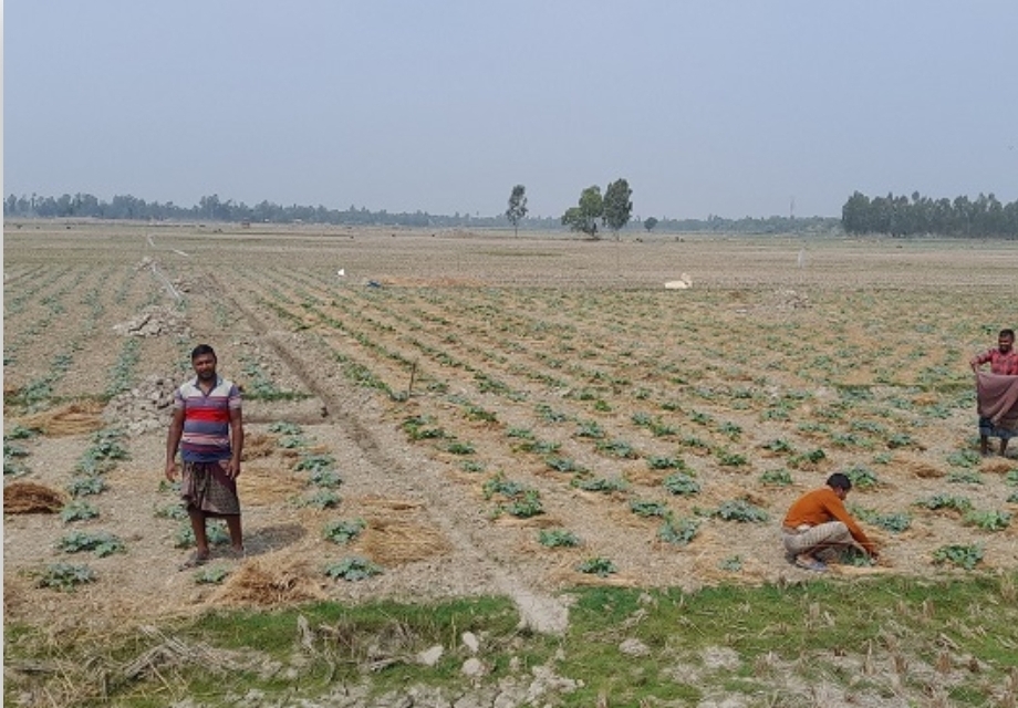 শ্যামনগরে তরমুজ ক্ষেত পরিচর্যায় ব্যস্ত সময় পার করছে চাষীরা।