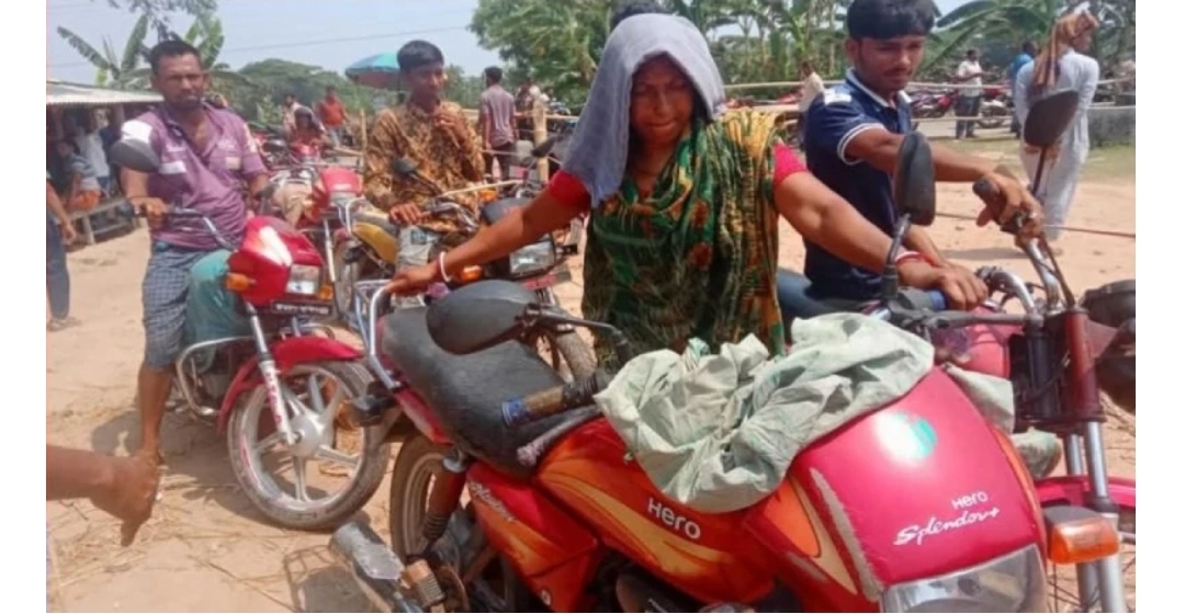 শ্যামনগরে পেট্রোল নিতে ছেলের মোটরসাইকেল নিয়ে দীর্ঘ লাইনে মা