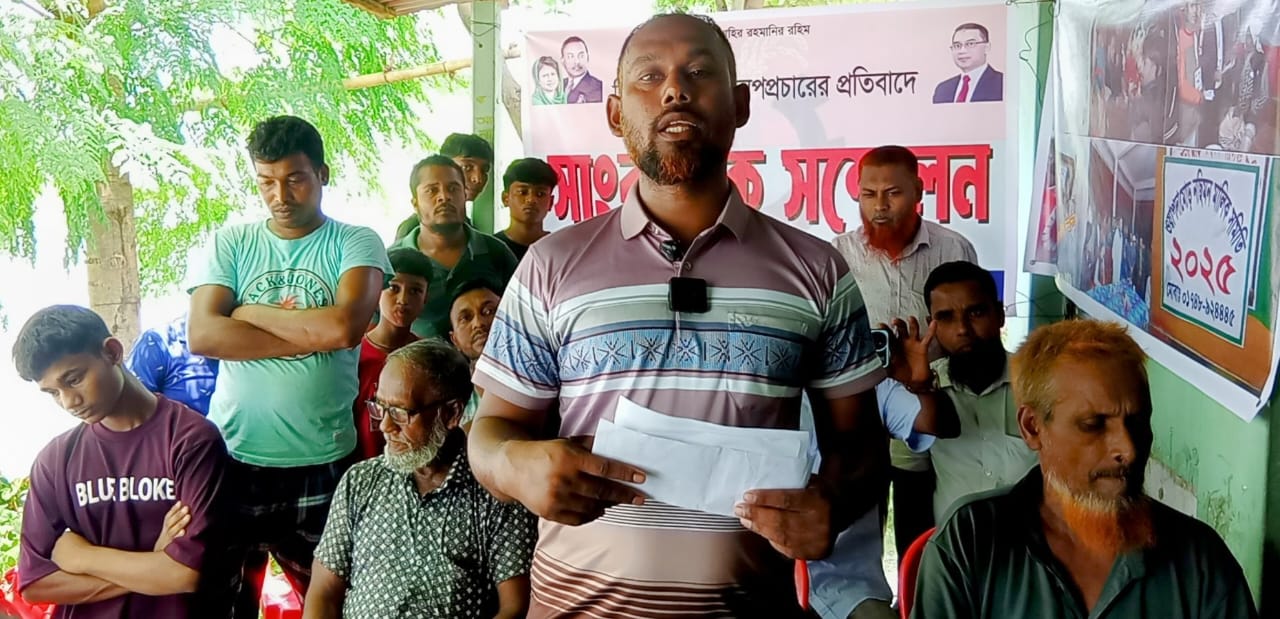 সংবাদ সম্মেলনে নাকোল ইউনিয়ন যুবদলের কারা নির্যাতিত নেতা সৈয়দ শওকত কামাল রাজু, ওয়ার্ড বিএনপির সাবেক সাধারণ সম্পাদক মাহমুদুল হাসান মাহমুদ, নাকোল ইউনিয়ন যুবদল কর্মী মিলন শেখ ও যুবদল কর্মী মো. মিরুল শেখ লিখিত বক্তব্যে বলেন, গত ৯ জুন সোমবার বিকেলে মান্দারতলা গড়াই পার্কে চাঁদা তোলাকে কেন্দ্র একই গ্রামের নাকোল ইউনিয়ন যুবলীগের সাবেক সদস্য জাহাঙ্গীর হোসেনের সাথে স্থানীয় নাকোল ইউনিয়ন যুবদল কর্মী ও তার লোকজনের বাগবিতণ্ডা হয়। বাগবিতণ্ডার এক পর্যায়ে উভয়পক্ষের লোকজন মারামারিতে জড়িয়ে পড়ে। এ বিষয়কে কেন্দ্র করে জাহাঙ্গীর হোসেন যুবদল নেতা রাজুকে হেয়প্রতিপন্ন করতে সামাজিক যোগাযোগ মাধ্যমে অপপ্রচার করতে থাকে। আসলে আওয়ামী সরকারের আমলে জাহাঙ্গীর এলাকায় চাঁদাবাজি, মাদক ব্যবসাসহ বিভিন্ন অপকর্মে জড়িত ছিল। পতিত ফ্যাসিষ্ট সরকারের দোসর জাহাঙ্গীর এখনো এলাকায় চাঁদাবাজি, মাদক ব্যবসাসহ বিভিন্ন অপকর্মের সাথে জড়িত রয়েছে। এবং এলাকায় ত্রাসের রাজত্ব কায়েম করছে। চাঁদাবাজি ও মাদক ব্যবসায়ী জাহাঙ্গীর নিজের অপকর্ম ঢাকতে তিনি আমাদের নামে মিথ্যা অপপ্রচার করেছে। আমরা এ ঘটনার তীব্র নিন্দা ও প্রতিবাদ জানাচ্ছি। সেই সাথে প্রশাসনের হস্তক্ষেপ কামনা করছি।