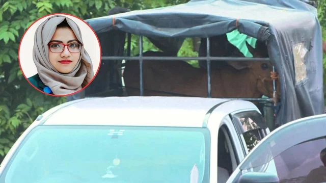 সভায় যোগ দিতে সরকারি গাড়িতেই রাজশাহী এসেছিলেন নাটোরের বাগাতিপাড়া উপজেলা নির্বাহী কর্মকর্তা (ইউএনও) হা-মীম তাবাসসুম প্রভা। সভা শেষ করে সোজা হাটে গিয়ে তিনি কোরবানির গরু কিনেছেন। তারপর সেই সরকারি গাড়িতেই তুলে নিয়ে গেছেন গরু। বৃহস্পতিবার (৫ জুন) এই ঘটনা ঘটে। এ নিয়ে ব্যাপক সমালোচনা দেখা দিয়েছে।সংশ্লিষ্ট সূত্রে জানা গেছে, রাজশাহী অঞ্চলে আমের কেনাবেচার সময় আড়তদারদের বাড়তি ওজন নেওয়া নিয়ে বৃহস্পতিবার সকালে বিভাগীয় কমিশনারের কার্যালয়ে একটি সভা ছিল। এ সভায় এসেছিলেন বাগাতিপাড়ার ইউএনও হা-মীম তাবাসসুম প্রভা। তিনি এখন বাগাতিপাড়া উপজেলার সহকারী কমিশনারেরও (ভূমি) অতিরিক্ত দায়িত্ব পালন করছেন।তাই উপজেলার সহকারী কমিশনারের (ভূমি) ডাবল কেবিন পিকআপ নিয়েই তিনি সভায় আসেন। সভা শেষ হয় দুপুরে। এরপর রাজশাহীর সিটিহাটে গিয়ে তিনি কোরবানির জন্য একটি গরু কেনেন। সেই গরু তিনি গাড়ির পেছনের কেবিনে তুলে নেন। আর সামনের কেবিনে বসেন ইউএনও। এভাবে তিনি সরকারি গাড়িতে রাজশাহী থেকে গরু নাটোর নিয়ে যান।