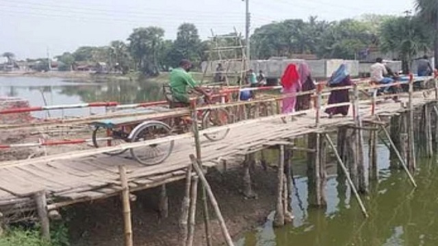 সরেজমিন গতকাল সকাল সাড়ে ১০টার দিকে সাতক্ষীরা সদর উপজেলার রইচপুরে দেখা যায়, সেতুর চারটি পিলার ছাড়া দৃশ্যত আর কিছুই হয়নি। কয়েকজন শ্রমিক কাজ করছেন। পাশেই চলাচলের জন্য কাঠের পাটাতন দিয়ে একটি সাঁকো নির্মাণ করা হয়েছে। সেই সেতু দিয়ে বিভিন্ন এলাকার মানুষ যাতায়াত করছেন ঝুঁকি নিয়ে।