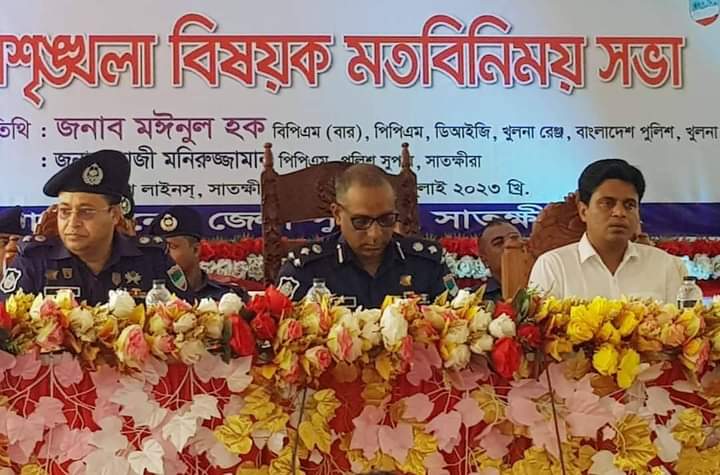 সোমবার ২৪ জুলাই বেলা সাড়ে ১১টায় সাতক্ষীরা জেলা পুলিশের আয়োজনে আইনশৃঙ্খলা বিষয়ক মতবিনিময় সভার প্রধান অতিথির বক্তব্যে এসব কথা বলেন খুলনা রেঞ্জ ডিআইজি মোহাম্মদ মঈনুল হক বিপিএম (বার), পিপিএম।