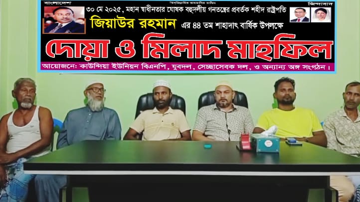 সাভারে , কাউন্দিয়া ইউনিয়ন এ বিএনপির প্রতিষ্ঠাতা ,বহুদলীয় গণতন্ত্রের প্রবক্তা ও আধুনিক বাংলাদেশের স্থপতি শহীদ রাষ্ট্রপতি জিয়াউর রহমানের ৪৪তম শাহাদাৎ বার্ষিকী উপলক্ষে মিলাদ ও দোয়া মাহফিল অনুষ্ঠিত হয়েছে। শনিবার রাত দশ ঘটিকার সময় (৩১ মে ২০২৫ইং)সাভারের কাউন্দিয়া ইউনিয়ন নোয়াখালী গলিতে ইউনিয়ন বিএনপির যুবদল স্বেচ্ছাসেবক দলের উদ্যোগে এ আয়োজন সম্পন্ন হয়।অনুষ্ঠানে উপস্থিত ছিলেন, কাউন্দিয়া ইউনিয়ন যুবদলের সভাপতি কাওছার আহমেদ সেন্টু, সাভার থানা স্বেচ্ছাসেবক দলের নেতা ও কাউন্দিয়া ইউনিয়ন যুবদলের সিনিয়র সহ-সভাপতি, মোহাম্মদ আল ইসলাম, কাউন্দিয়া ইউনিয়ন যুবদলের সাধারণ সম্পাদক এস এম রাশেদ বিদ্যুৎ, সহ ইউনিয়ন বিভিন্ন ইউনিটের নেতাকর্মীরা।দোয়া মাহফিলে শহীদ রাষ্ট্রপতির রুহের মাগফিরাত কামনা করে বিশেষ দোয়া ও মোনাজাত করা হয়।মোনাজাতে জাতির কল্যাণ, গণতন্ত্রের সুপ্রতিষ্ঠা এবং দেশের শান্তি ও সমৃদ্ধিও কামনা করা হয় উক্ত অনুষ্ঠান শেষে সকলের মাঝে তোবারক বিতরণ করা হয়।