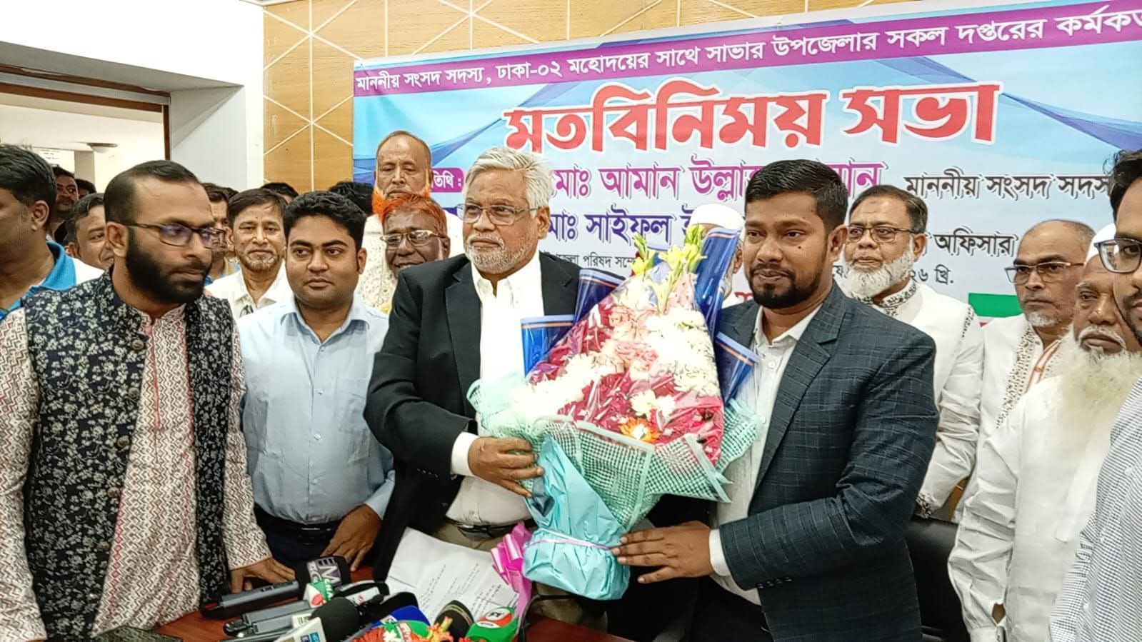 সাভারে ঢাকা ২ আসনের নবনির্বাচিত সংসদ সদস্য আমান উল্লাহ আমানের সাথে সাভার উপজেলা প্রশাসনের মতবিনিময় সভা অনুষ্ঠিত হয়েছে