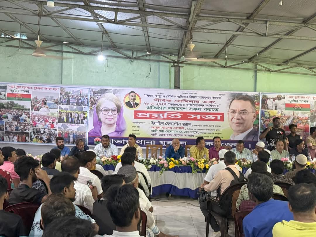 রাকিবুল ইসলাম রঞ্জু: সাভারে শিক্ষা, স্বাস্থ্য ও মৌলিক অধিকার বিষয়ে তারুণ্যের ভাবনা শীষর্ক সেমিনার এবং তারুণ্যের রাজনৈতিক অধীকার প্রতিষ্ঠার সমাবেশ সফল করতে প্রস্তুতি সভা অনুষ্ঠিত হয়েছে। সাভার থানা যুবদলের আয়োজনে স্থানীয় এক মিলনায়তনে । সভায় বক্তরা আগামী ২৮ মে রাজধানীতে আয়োজিত এ সমাবেশ সফল করতে সকলকে অংশ নেয়ার আহবান জানান।