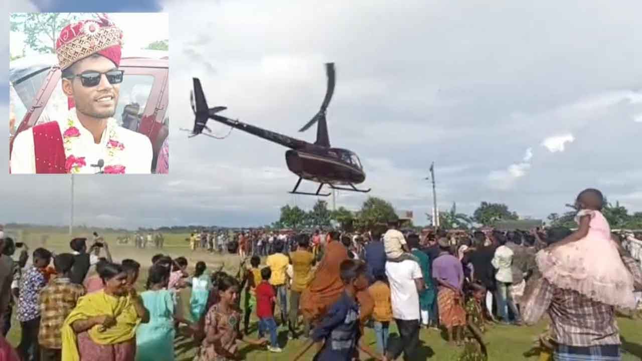নেত্রকোনার মদন উপজেলায় হেলিকপ্টারে করে নতুন বউকে বাড়ি এনে দীর্ঘদিনের স্বপ্ন পূরণ করলেন মাসুম খান নামে এক ব্যক্তি। তিনি পেশায় একজন ট্রাক্টরচালক।শুক্রবার (৪ জুলাই) বিকেলে তিনি বর সেজে হেলিকপ্টারে করে শ্বশুর বাড়ি থেকে নববধূকে নিজ বাড়িতে নিয়ে আসেন। মাসুম খান মদন উপজেলার নায়েকপুর পূর্বপাড়া গ্রামের মতিউর রহমানের ছেলে। আর তার শ্বশুর বাড়ি একই উপজেলার ফতেপুর ছত্রকোনা গ্রামে। নায়েকপুর থেকে ফতেপুর ছত্রকোনা গ্রামের দূরত্ব মাত্র ছয় কিলোমিটার।