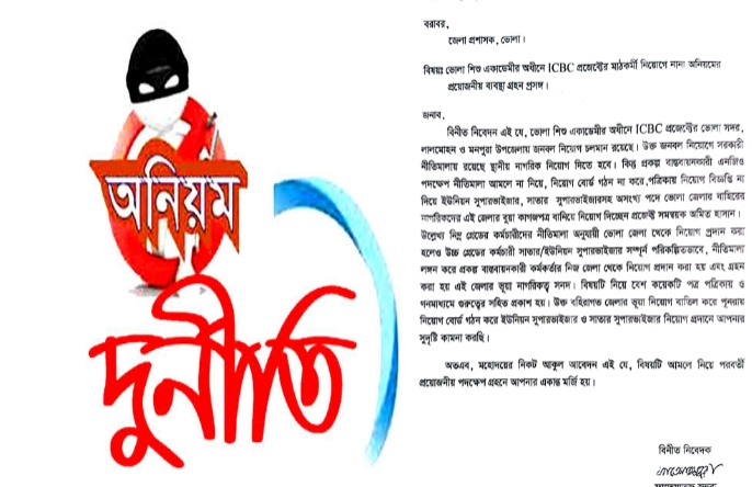 ক্রাইম রিপোর্টারঃ- মহিলা ও শিশু বিষয়ক মন্ত্রণালয় পরিচালিত ভোলা শিশু একাডেমীর অধীনে ICBC প্রজেক্টটি বাস্তবায়নের কাজ করছেন এনজিও পদক্ষেপ বাংলাদেশ। উক্ত প্রজেক্টটি সরকারি অর্থায়নে পরিচালিত। ইতোমধ্যে নীতিমালা অনুযায়ী ভোলা জেলার ভোলা সদর,লালমোহন এবং মনপুরা উপজেলা আইসিবিসি প্রজেক্টটি কাজ শুরু করার পরিকল্পনা হাতে নিয়েছেন। মূলত ছয় বছরের পূর্বে বেড়ে ওঠা শিশুদের শিশু বিকাশ ও সাঁতার প্রশিক্ষণের জন্য এই প্রকল্পটি হাতে নিয়েছে মহিলা ও শিশু বিষয়ক মন্ত্রণালয়। উক্ত প্রজেক্ট মাঠ পর্যায়ে বাস্তবায়ন করার জন্য সরকারের সাথে চুক্তিবদ্ধ হয়েছেন বেসরকারি প্রতিষ্ঠান পদক্ষেপ বাংলাদেশ। বিষয়টি বিবেচনা করে ভোলা জেলার তিনটি উপজেলায় জনবল নিয়োগ দেওয়ার জন্য দায়িত্বপ্রাপ্ত পদক্ষেপ বাংলাদেশের প্রকল্প সমন্বয় অমিত হাসান। উক্ত জনবল নিয়োগকে কেন্দ্র করে নানা দুর্নীতি ও অনিয়ম নিয়ে জেলা প্রশাসকের নিকট লিখিত অভিযোগ করেন কয়েকজন ভুক্তভোগী, অভিযোগে তুলে ধরা হয় প্রকল্প বাস্তবায়নে নীতিমালা অনুযায়ী স্থানীয় নাগরিক নেওয়ার কথা থাকলেও প্রকল্প পরিচালক অমিত হাসান সরকারের দেওয়া নীতিমালা তোয়াক্কা না করে অন্য জেলা থেকে তার নিকট আত্মীয় লোকজনদের নিয়োগ প্রদান করেন এবং অভিযোগ তুলে ধরা হয় অন্য জেলার লোকজনদের এই জেলার লোকজন সাজিয়ে ভুয়া নাগরিকত্ব সনদ দেখিয়ে এসব জনবল নিয়োগ দেওয়া হয়। অভিযোগ পত্রে আরও তুলে ধরা হয় এ নীতিমালায় নিয়োগ বোর্ড গঠন হয় নাই এবং পত্রিকায় নিয়োগ বিজ্ঞপ্তি প্রকাশ করা হয় নাই। সম্পূর্ণ ইচ্ছে মত নিজের মতো করেই এ ধরনের অনিয়ম চালিয়ে গেছেন পদক্ষেপ বাংলাদেশের প্রজেক্ট সমন্বয়ক অমিত হাসান। উক্ত অভিযোগ নিয়ে অভিযুক্ত অমিত হাসানের নিকট জানতে চাইলে তিনি জানান এসব নিয়োগে তার কোন হাত নেই, তিনি শুধুমাত্র সিভি গ্রহণ করেন এবং পদক্ষেপের হেড অফিসের প্রেরণ করেন হেড অফিস ইচ্ছে মতো যাকে খুশি তাকেই নিয়োগ দেন। নিয়োগ বাণিজ্য হচ্ছে কিনা এই প্রশ্নের জবাবে অভিযুক্ত অমিত হাসান মুঠো ফোনের লাইনটি কেটে দেয়। উক্ত প্রকল্পে জনবল নিয়োগ নীতিমালা লঙ্ঘন ও নিয়োগ বাণিজ্যের অভিযোগের বিষয়ে জেলা শিশু বিষয়ক কর্মকর্তার নিকট জানতে চাইলে তিনি জানান, আমি প্রকল্প সমন্বয়ক অমিত সাহেবকে নীতিমালা অনুযায়ী নিয়োগ বোর্ড গঠন করে জনবল নিয়োগের জন্য পরামর্শ দিয়েছি এবং নিয়োগ বাণিজ্যের বিষয়ে আমি কিছুই জানিনা, এসব বিষয়গুলি উনি একাই করে যাচ্ছেন। লিখিত অভিযোগ এ নিয়ে ভোলা জেলা প্রশাসন কার্যালয়ের, অতিরিক্ত জেলা প্রশাসক (সার্বিক) নিকট জানতে চাইলে তিনি জানান, এ বিষয়ে আমি অমিত সাহেবকে কঠোর নির্দেশনা দিয়েছি, আমি বিষয়টি তদন্ত করে দেখব এবং খুব দ্রুতই ব্